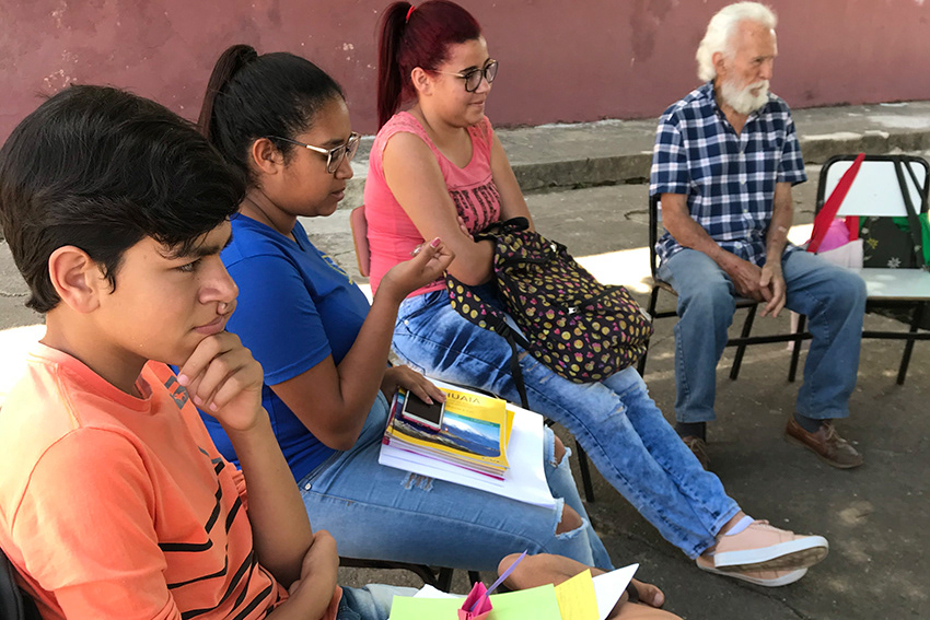 Objetivo: Fomento à interação entre gerações isoladas em suas casas durante o período da pandemia. Pessoas mais velhas – pais, mães, professores e cidadãos – passaram a ser fonte primária para a produção de dados sobre a cultura local. Ao final do projeto, essas pessoas que antes eram consideradas obsoletas possibilitaram, junto aos alunos, a construção conjunta de alternativas profissionais e sociais para a comunidade.